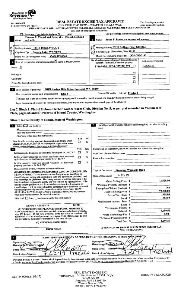 | Mailing Address: | REBEKAH A LOWE 2895 VIEWMONT PL CAMANO ISLAND, WA 98282 | % Ownership: | 100.0000000000% |