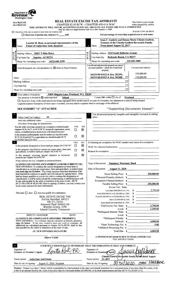 | 5 | 11/01/1994 | WD | Warranty Deed | SUNDQUIST, ARTHUR | MILLER, LEE G | | | $32,500.00 | 44506 | 94023170 |
