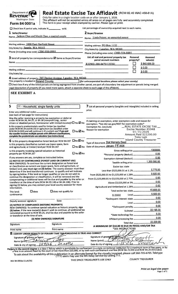 | Tax Area: | 712 - APPRAISER-S Whid Schl Dist, outside Langley, improved, greater than 1 acre | Land Use Code | 11 |