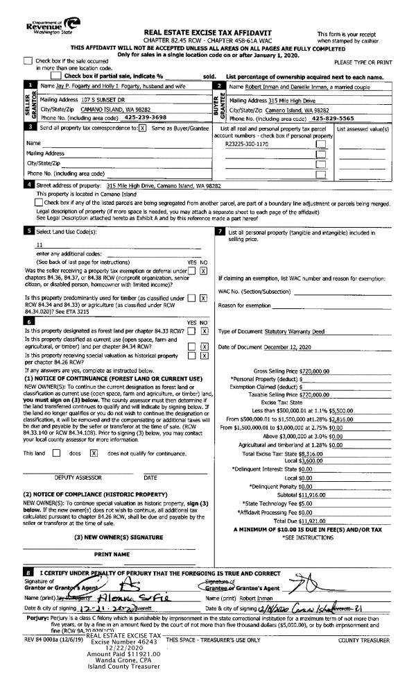 | Mailing Address: | 321 SPYGLASS DR FREELAND, WA 98249 | % Ownership: | 100.0000000000% |