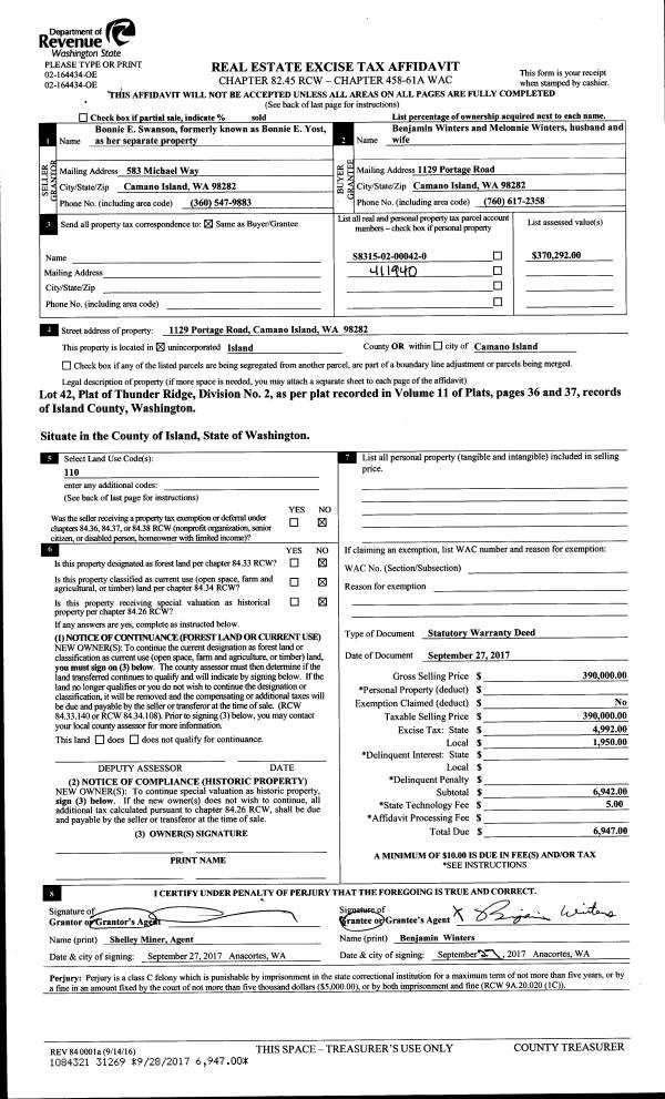 | Mailing Address: | 352 NW 1ST AVE OAK HARBOR, WA 98277 | % Ownership: | 100.0000000000% |