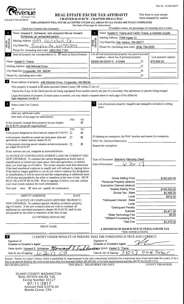 | Mailing Address: | 391 NW 1ST AVE OAK HARBOR, WA 98277 | % Ownership: | 100.0000000000% |