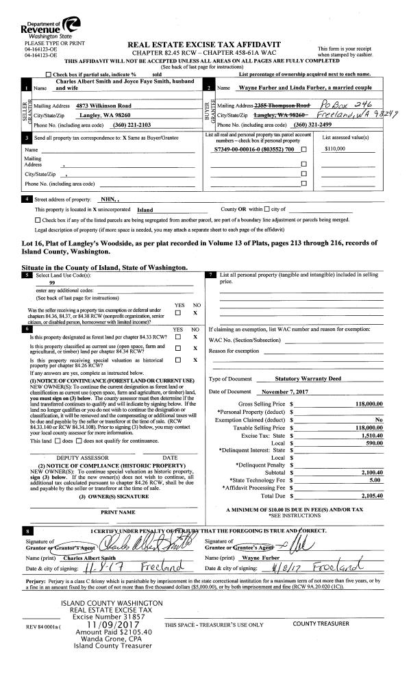 | Mailing Address: | 1025 SW 2ND AVE OAK HARBOR, WA 98277 | % Ownership: | 100.0000000000% |