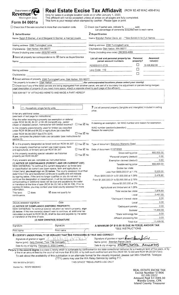 | Mailing Address: | 1052 SW 2ND AVE OAK HARBOR, WA 98277 | % Ownership: | 100.0000000000% |