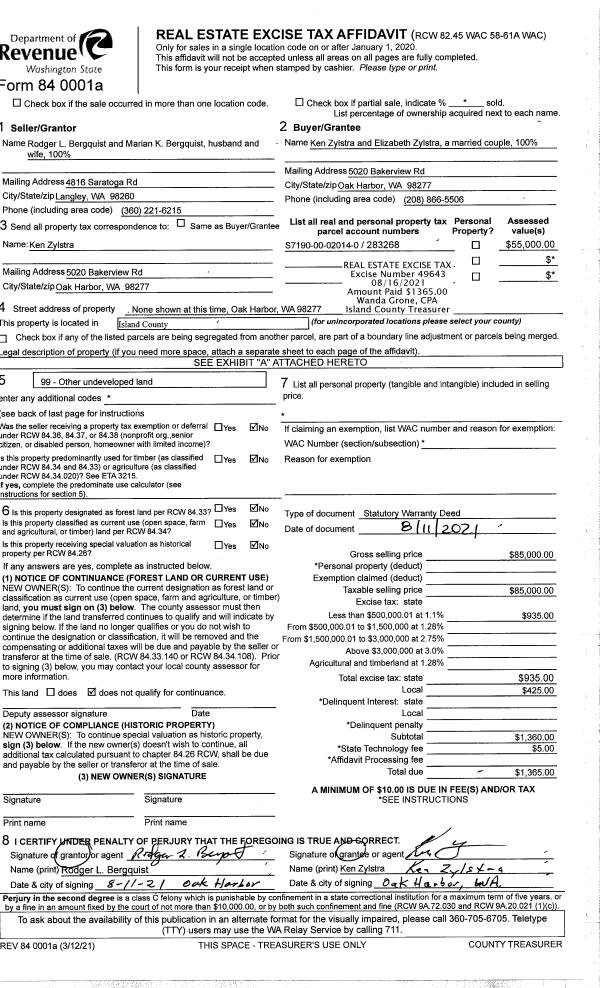 | Tax Area: | 810 - APPRAISER-S Whid Schl Dist, Diking District#1, improved & 1 acre or less | Land Use Code | 11 |