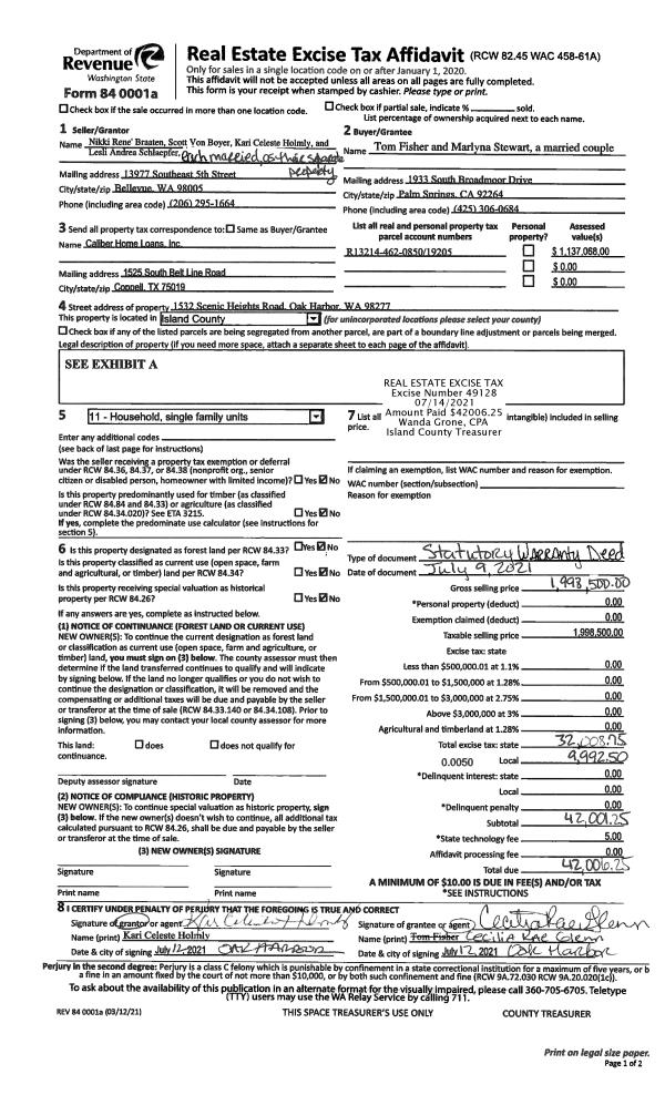 | Mailing Address: | 2482 SUNLIGHT BEACH RD CLINTON, WA 98236 | % Ownership: | 100.0000000000% |