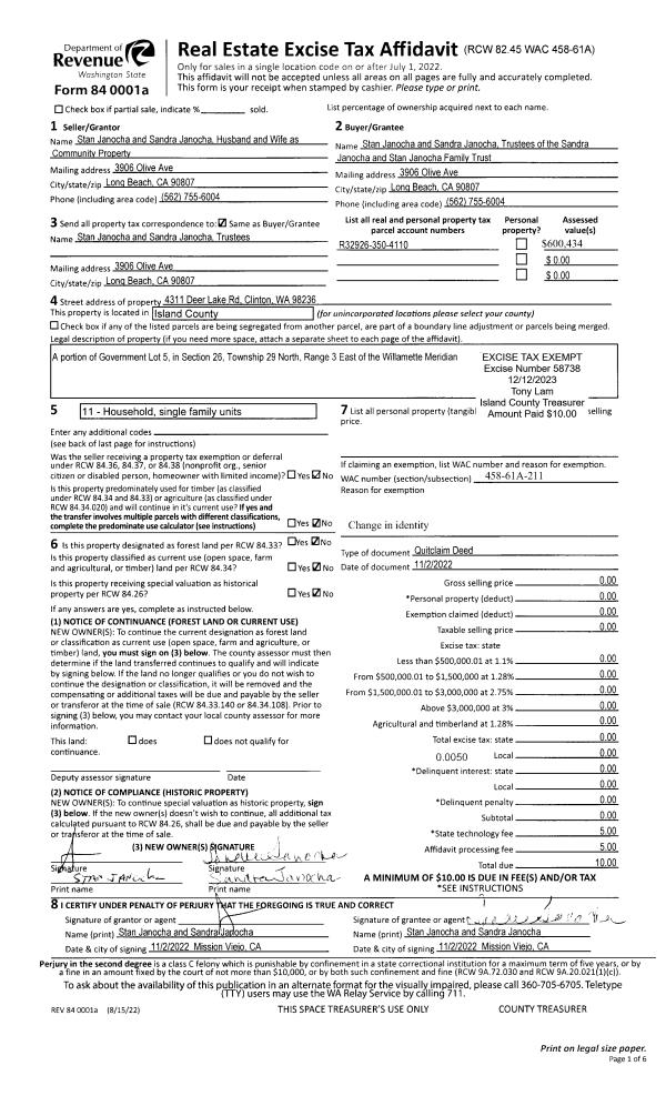 | Mailing Address: | PATRICIA D BEAUGARD 1745 CROSBY RD OAK HARBOR, WA 98277-8967 | % Ownership: | 100.0000000000% |