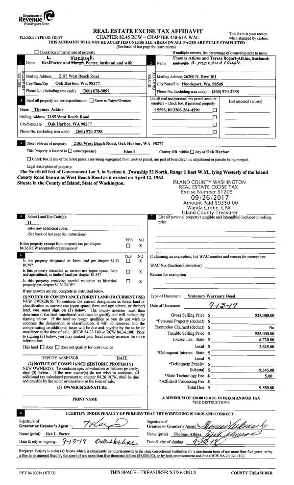 | 2 | 07/31/2017 | QCD | Quit Claim Deed | NURSE, BRUCE L | DUNGENESS CLAW, LLC | | | $0.00 | 30563 | 4427857 |