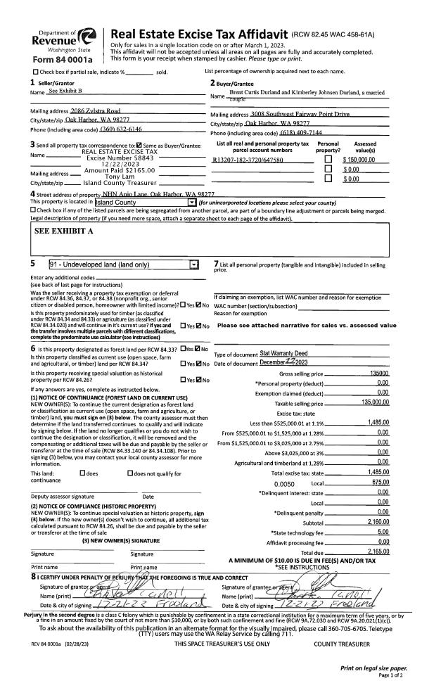 | Tax Area: | 819 - APPRAISER-S Whid Schl Dist, outside Langley, vacant & 50 acres or less | Land Use Code | 93 |