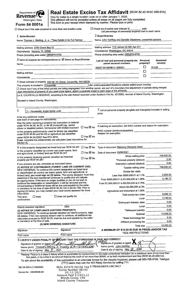 | Tax Area: | 710 - APPRAISER-S Whid Schl Dist, outside Langley, improved & 1 acre or less | Land Use Code | 11 |