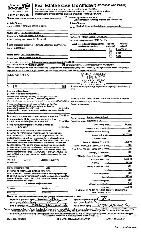 | Mailing Address: | CAROL A MCMULLEN 104 PARK AVE LANGLEY, WA 98260 | % Ownership: | 100.0000000000% |