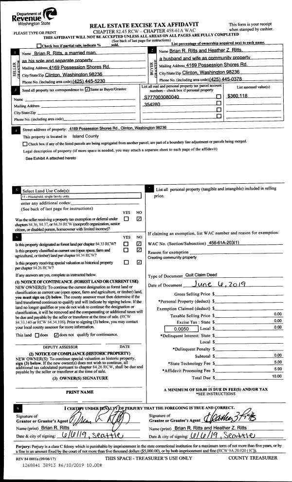| Mailing Address: | 260 LEGEND LN CAMANO ISLAND, WA 98282 | % Ownership: | 100.0000000000% |