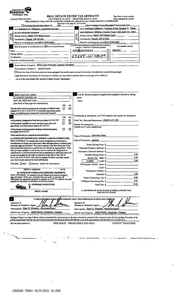 | Mailing Address: | TERRLE L JOHNSTON 1262 TALAGWA LN CAMANO ISLAND, WA 98282 | % Ownership: | 100.0000000000% |