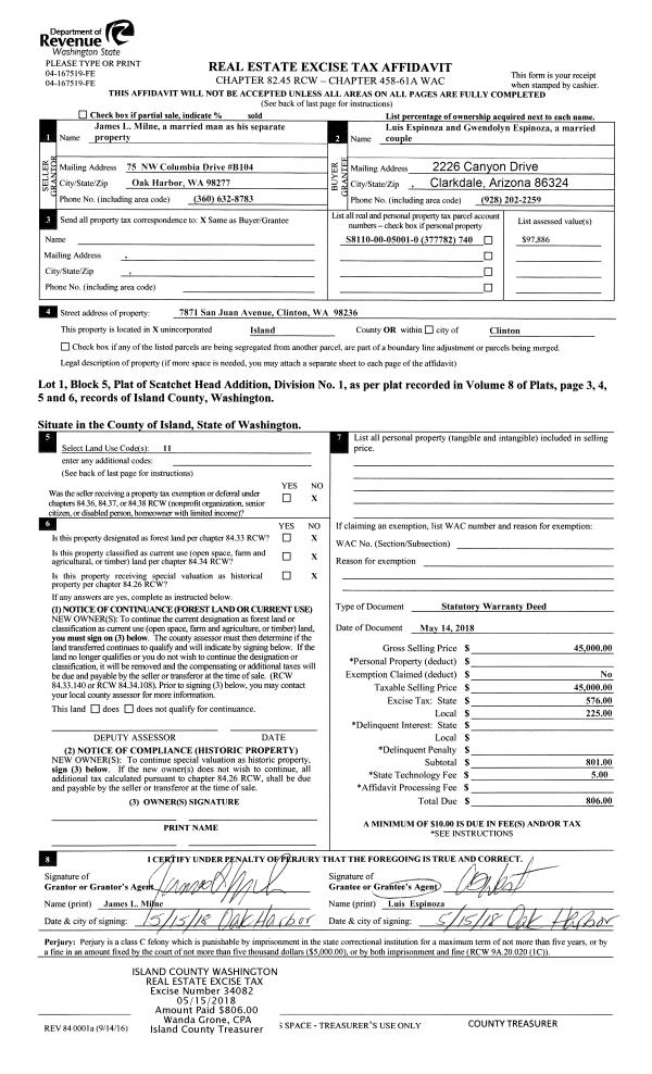 | 5 | 09/01/1989 | WD | Warranty Deed | LAIRD, NORTON T | CLEVEN, LEONARD N | | | $86,500.00 | 94820 | 89015648 |
