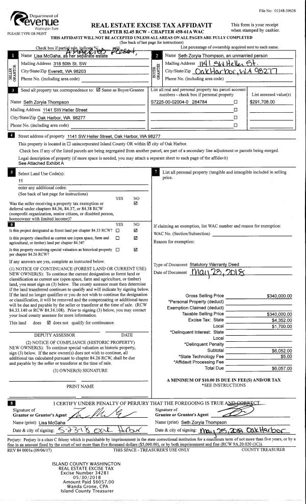 | Mailing Address: | PATRICK J CUNNINGHAM 2931 S EAST CAMANO DR CAMANO ISLAND, WA 98282 | % Ownership: | 100.0000000000% |