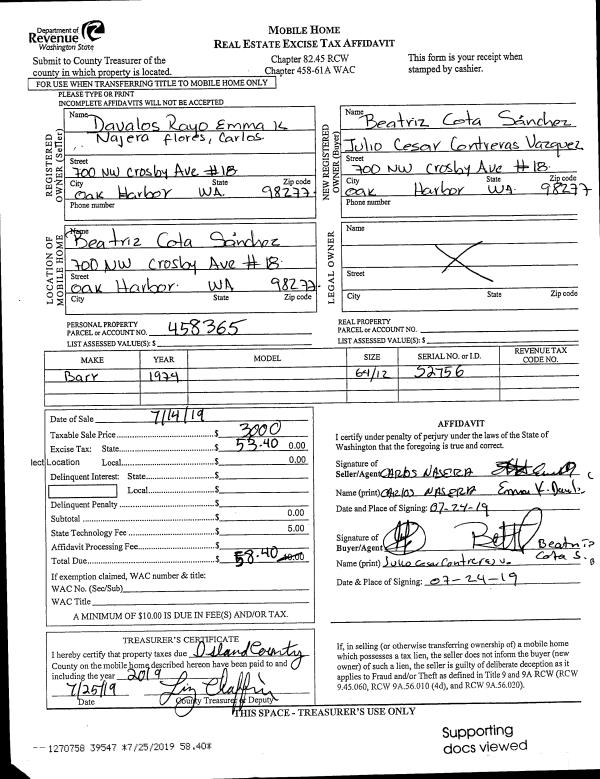 | Bathrooms: | 2 | Bedrooms: | 2 | | Ceiling: | DRYWALL PAINTED | Exterior Wall/Cover: | CEMENT FIBER | | Floor Covering: | CARPET/VINYL 80-20 | Floor Structure: | WOOD W/SUBFLOOR | | Foundation: | CONCRETE | Heating: | WALL HEAT ELECTRIC | | Interior Finish: | DRYWALL PAINT | Plumbing Fixture Cnt: | 10 | | Roof Slope: | 6" IN 12" | Roof Structure/Cover: | CJ ASPHALT |
