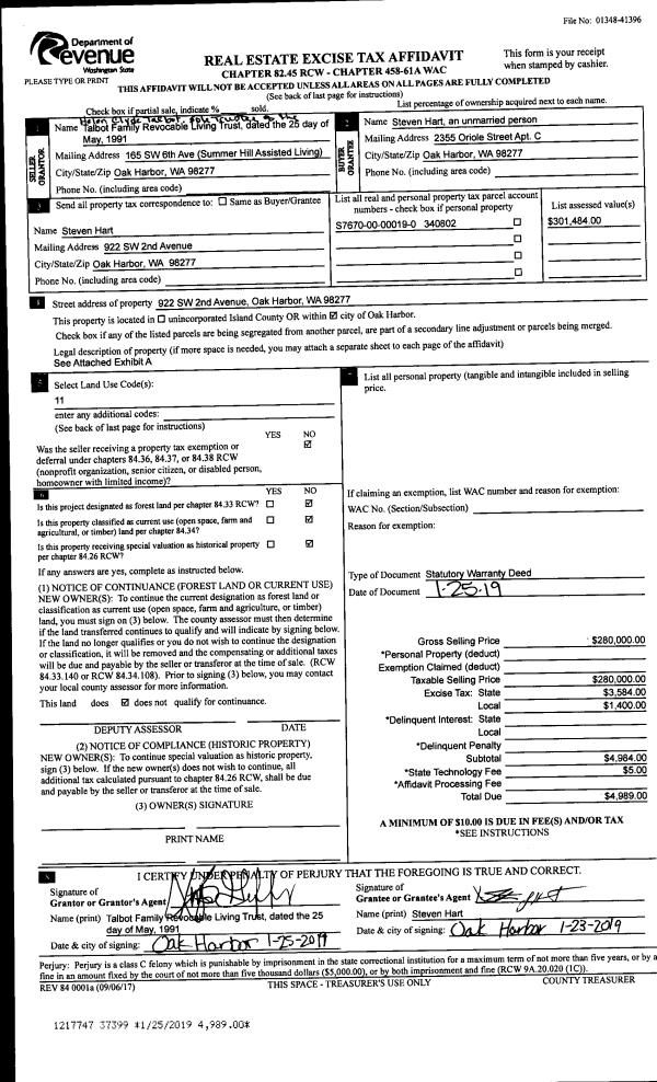 | Mailing Address: | 160 E SLEEPER ROAD OAK HARBOR, WA 98277 | % Ownership: | 100.0000000000% |