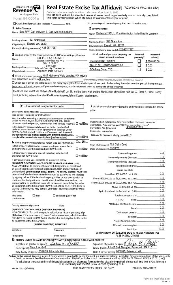 | Mailing Address: | VICTORIA ANN YOUNT 933 PENNINGTON LOOP NE COUPEVILLE, WA 98239 | % Ownership: | 100.0000000000% |