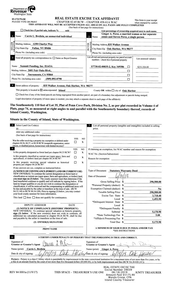 | Mailing Address: | MILENA BJERK 941 NE PENNINGTON LOOP COUPEVILLE, WA 98239 | % Ownership: | 100.0000000000% |