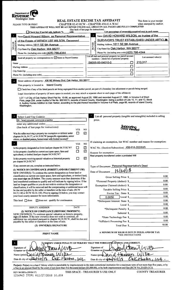 | Mailing Address: | 1015 NE SUMMIT LOOP COUPEVILLE, WA 98239 | % Ownership: | 100.0000000000% |
