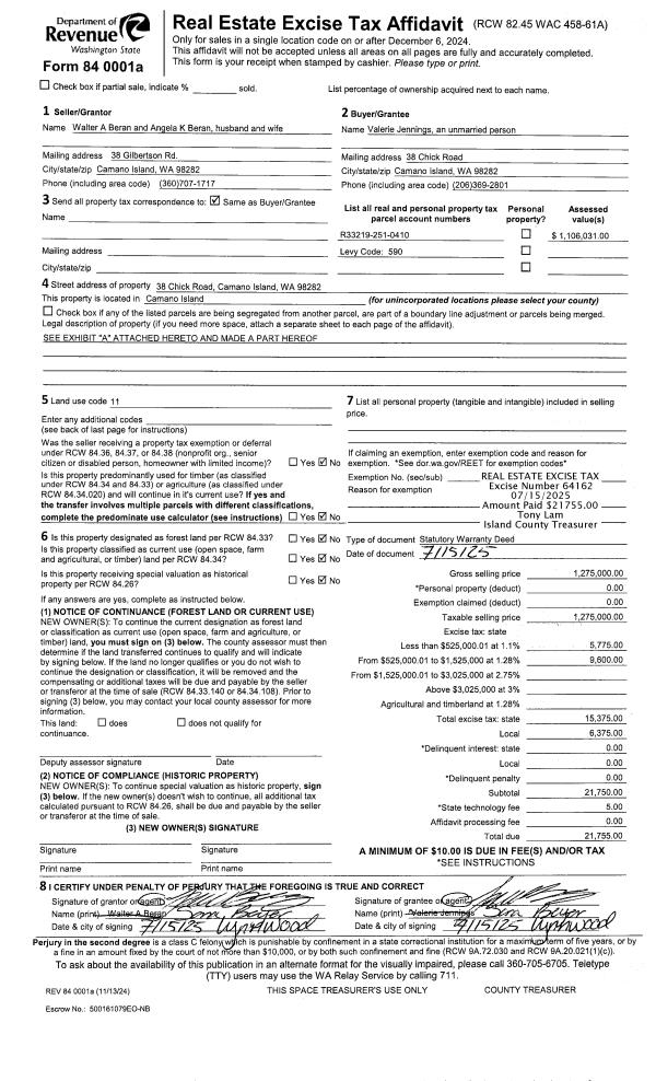| Mailing Address: | 204 NE FARIS ST COUPEVILLE, WA 98239-3549 | % Ownership: | 100.0000000000% |