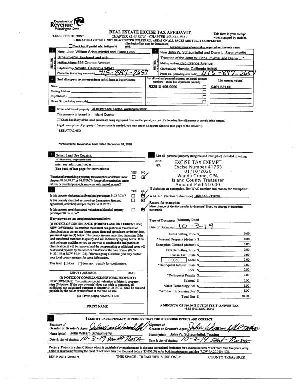 | Mailing Address: | ALEXANDRA V SEFTON PO BOX 520 COUPEVILLE, WA 98239-0520 | % Ownership: | 100.0000000000% |