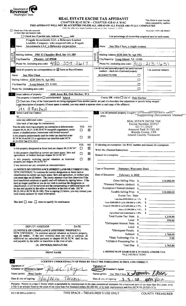 | Mailing Address: | 2780 DAVID LN OAK HARBOR, WA 98277 | % Ownership: | 100.0000000000% |