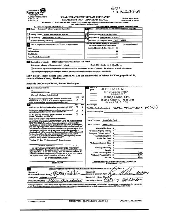 | Mailing Address: | 2704 SUN VISTA CIRCLE CLINTON, WA 98236 | % Ownership: | 100.0000000000% |