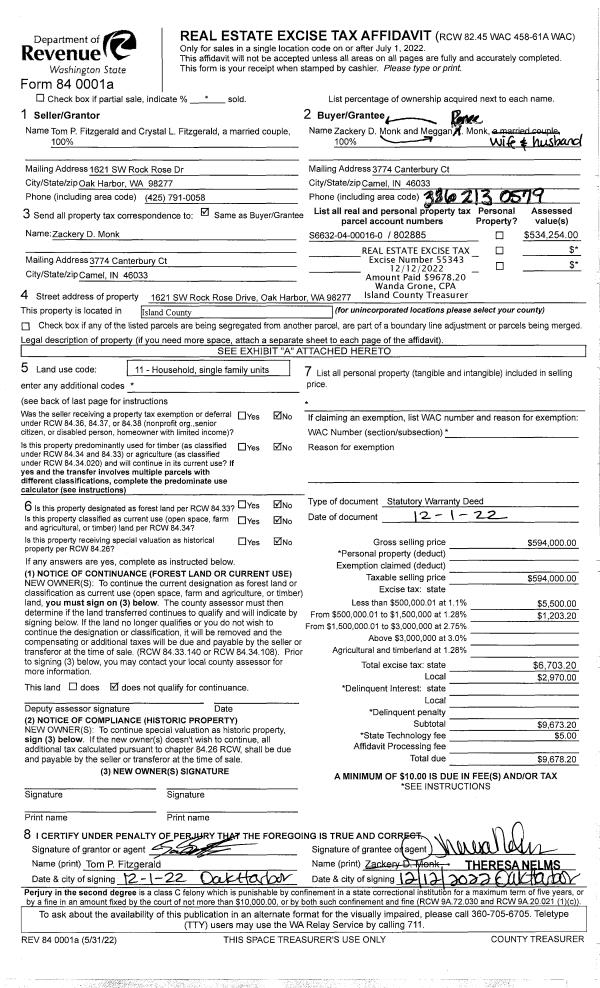 | Mailing Address: | 2761 SUN VISTA CIRCLE CLINTON, WA 98236 | % Ownership: | 100.0000000000% |