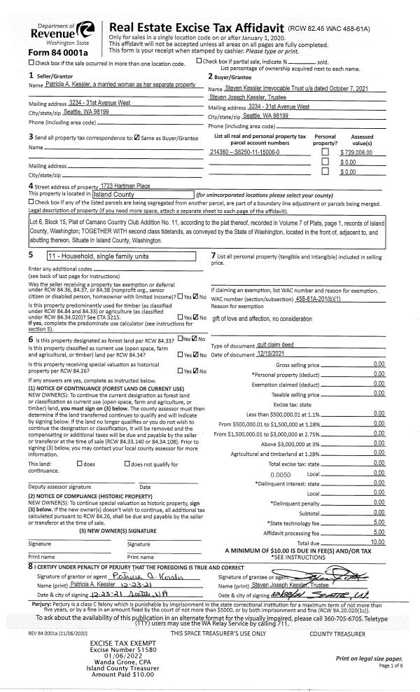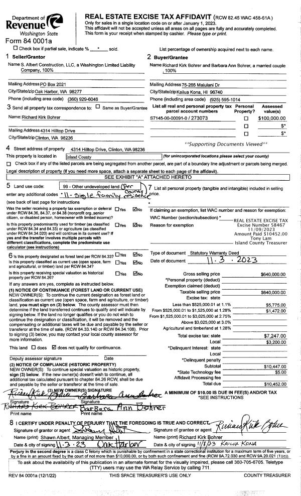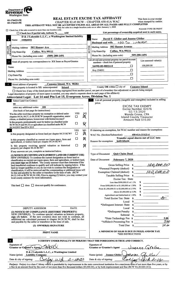| Mailing Address: | 5325 BERCOT RD FREELAND, WA 98249 | % Ownership: | 100.0000000000% |