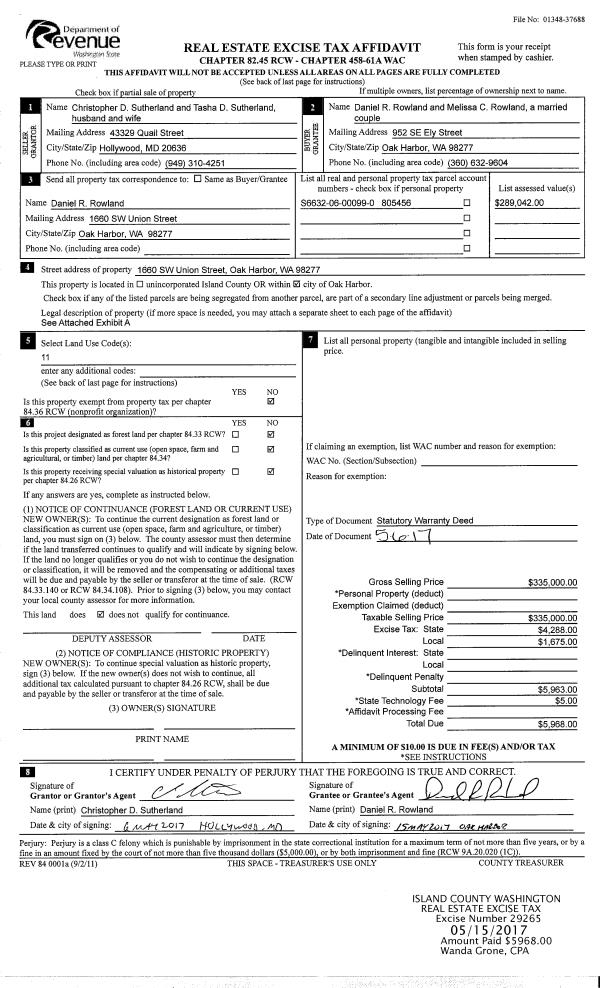 | 5 | 05/01/1990 | WD | Warranty Deed | RUTHERFORD, CHARLES E | VAN, SPRONSEN, L | | | $3,800.00 | 4371 | 90014466 |
