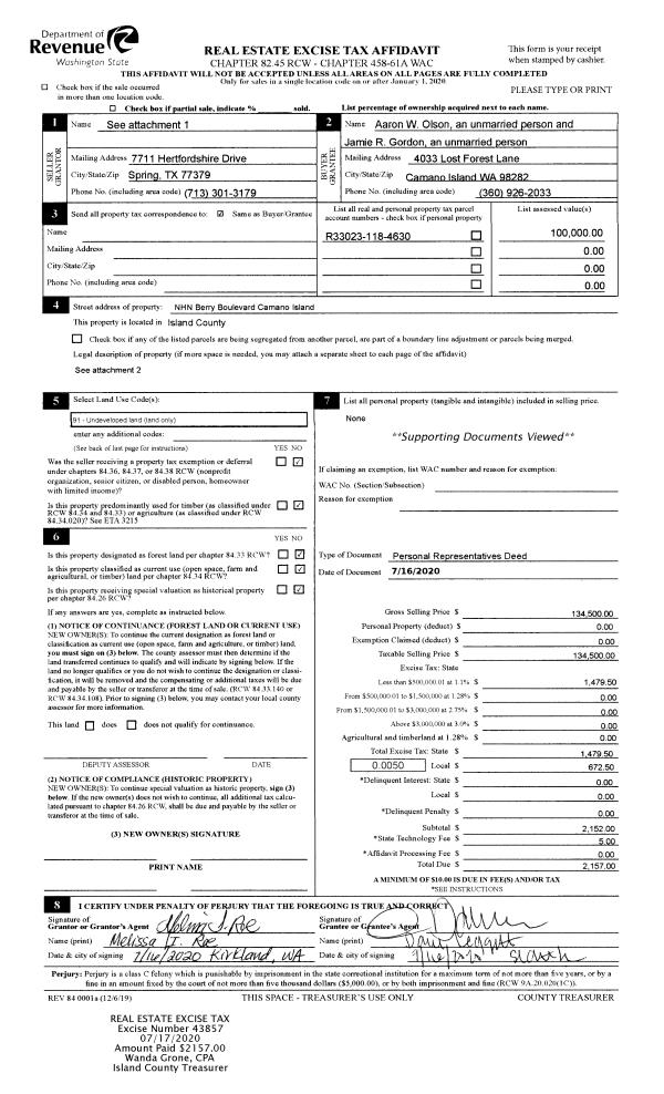 | SWHIDPRBD | P & R S Whidbey BOND | 0.0152817568 | $12,000 | $12,000 | $0.18 | | |