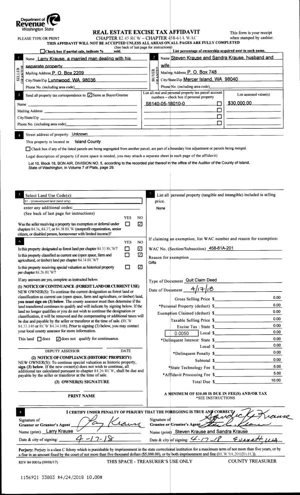 | 5 | 04/01/1985 | WD | Warranty Deed | GREVE, DOUGLAS A | JOHNSON, R H | | | $16,000.00 | 50907 | 85003747 |