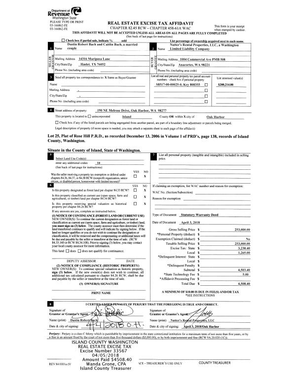 | Mailing Address: | PO BOX 52663 BELLEVUE, WA 98015 | % Ownership: | 100.0000000000% |
