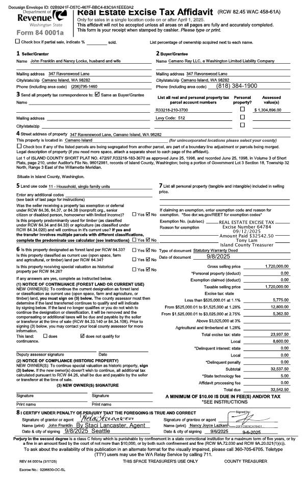 | Mailing Address: | 338 GRAMAYRE RD COUPEVILLE, WA 98239 | % Ownership: | 100.0000000000% |