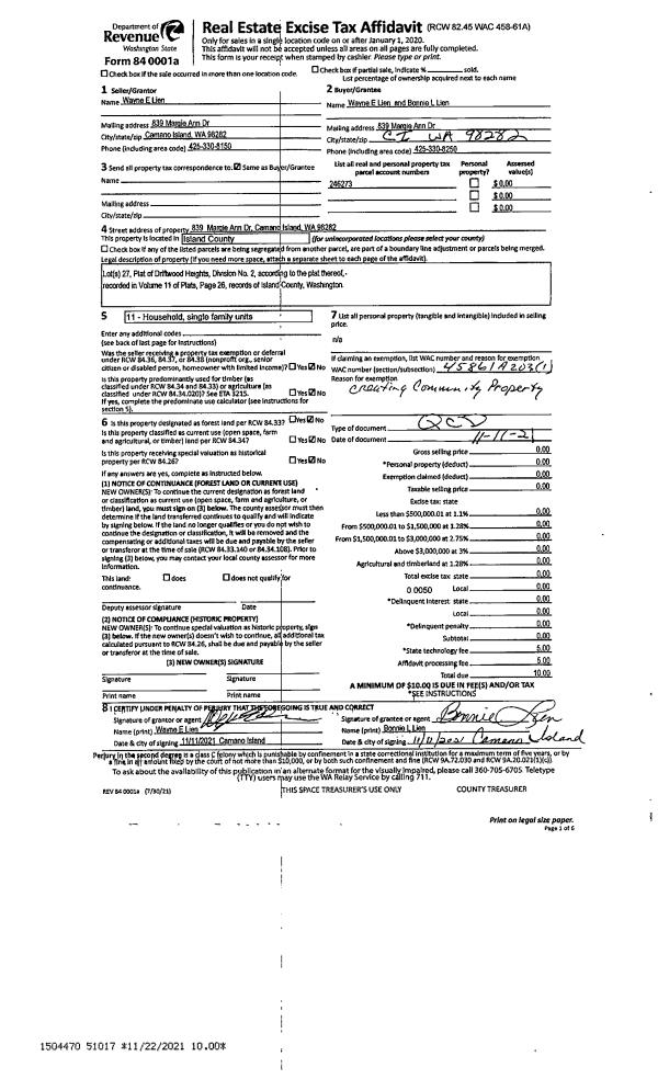 | 4 | 03/18/2021 | QCD | Quit Claim Deed | SMITH, SHARON G | SMITH, SHARON GAYLE | | | $0.00 | 47472 | 4514547 |