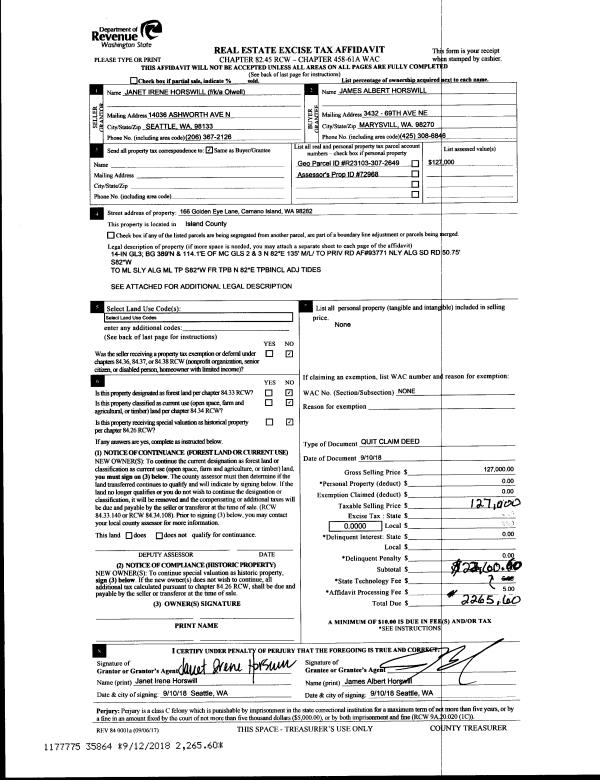 | Mailing Address: | 2205 SUNVIEW CT COUPEVILLE, WA 98239 | % Ownership: | 100.0000000000% |