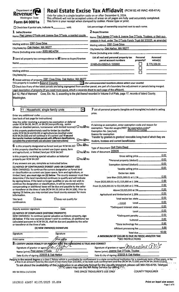 | Mailing Address: | KIMBERLY K HINDS 2210 TERONDA DR COUPEVILLE, WA 98239 | % Ownership: | 100.0000000000% |