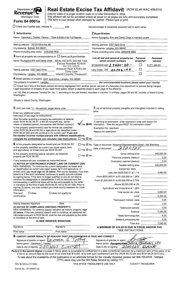 | Mailing Address: | KIMBERLY K HINDS 2210 TERONDA DR COUPEVILLE, WA 98239 | % Ownership: | 100.0000000000% |
