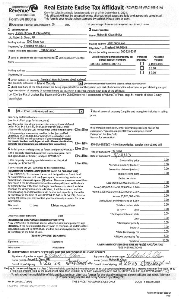 | 4 | 04/01/1985 | REC | Real Estate Contract | OAK, HARBOR L | MCKEW, INC | | | $3,000.00 | 50913 | 85003821 |
