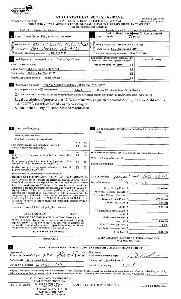 | Mailing Address: | CHRISTINA MORENO 2192 TERONDA DR COUPEVILLE, WA 98239 | % Ownership: | 100.0000000000% |