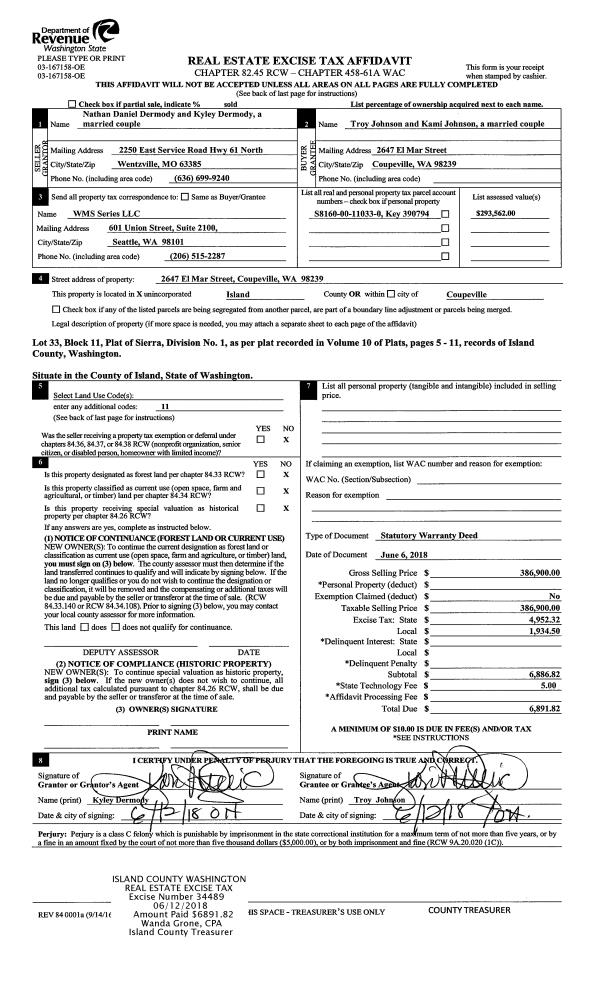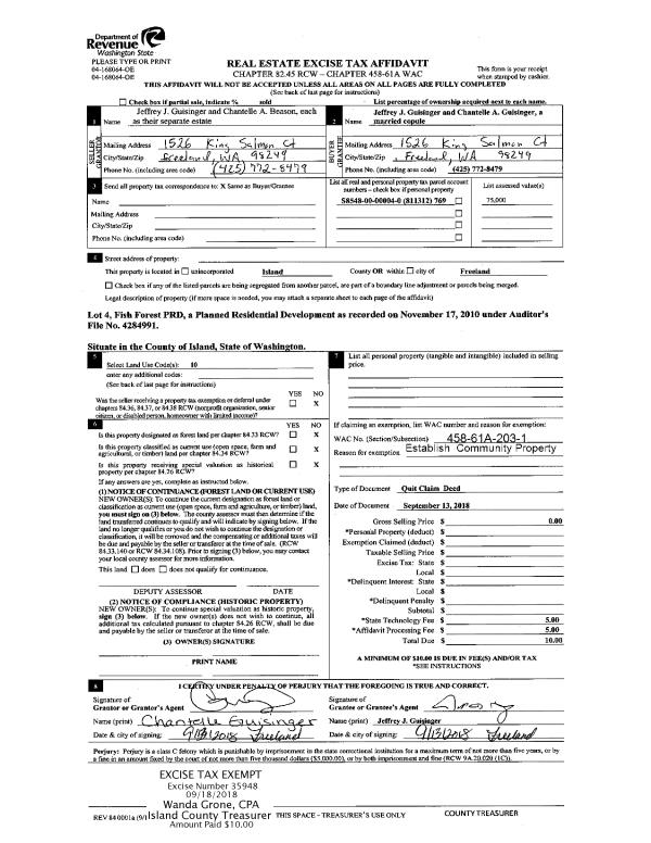 | Mailing Address: | KAREN D FERNANDEZ 440 MITCHELL DR COUPEVILLE, WA 98239 | % Ownership: | 100.0000000000% |