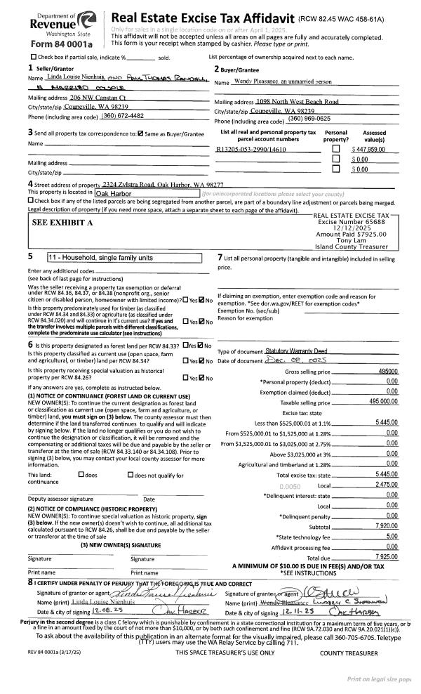 | Mailing Address: | 436 MITCHELL DR COUPEVILLE, WA 98239 | % Ownership: | 100.0000000000% |