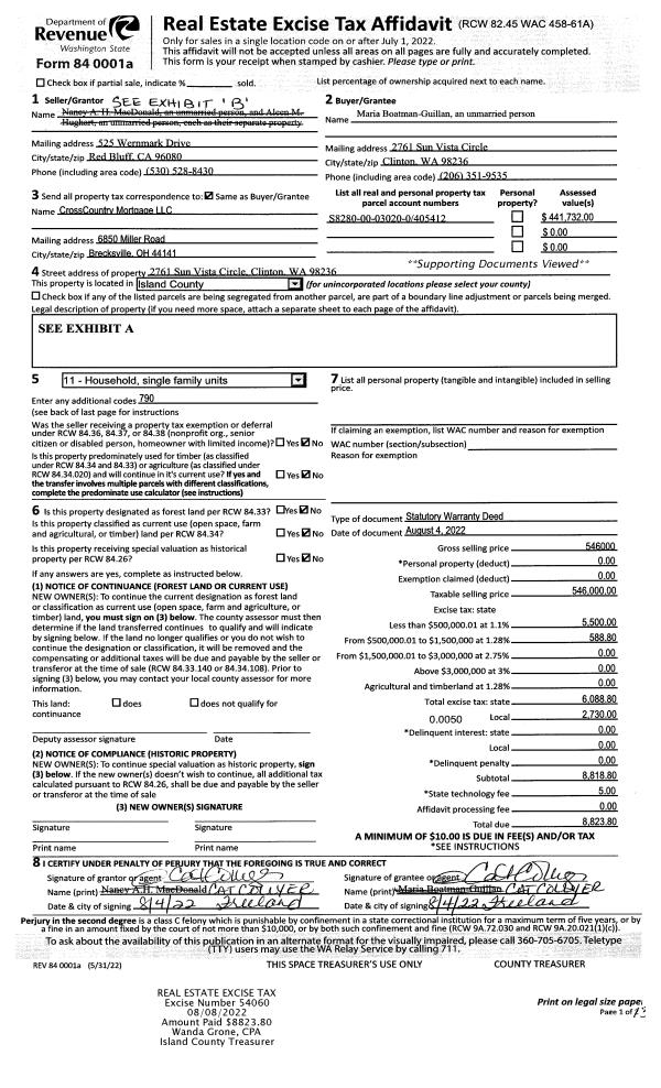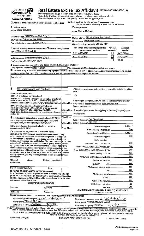 | 7 | 04/24/1998 | QCD | Quit Claim Deed | TR, CAMANO I | TR CAMANO INC, | | | $3,162.00 | 81503 | 98008222 |