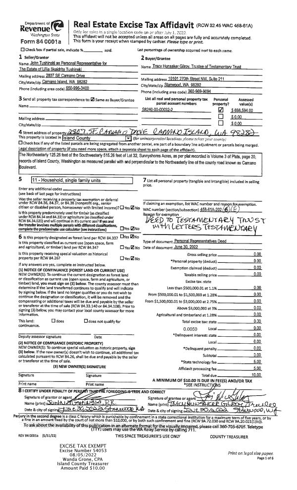 | 4 | 04/24/1998 | ESTSEPPROP | Establish Separate Property | TR, CAMANO I | TR CAMANO INC, | | | $0.00 | 91397 | 99009254 |