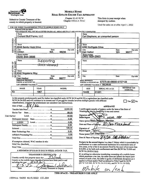 | Mailing Address: | 1038 FISHER KING WAY CAMANO ISLAND, WA 98282-8250 | % Ownership: | 100.0000000000% |