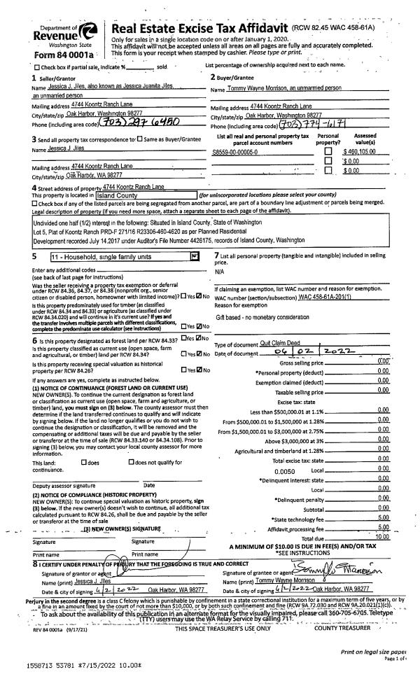 | 5 | 04/24/1998 | QCD | Quit Claim Deed | AYERS, DOROTHY & | TR CAMANO INC, | | | $3,162.00 | 81503 | 98008222 |