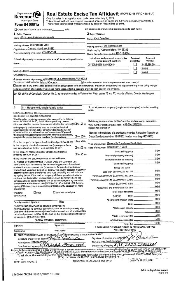 | 4 | 04/24/1998 | ESTSEPPROP | Establish Separate Property | TR CAMANO INC, | TR CAMANO INC, | | | $0.00 | 91397 | 99009254 |