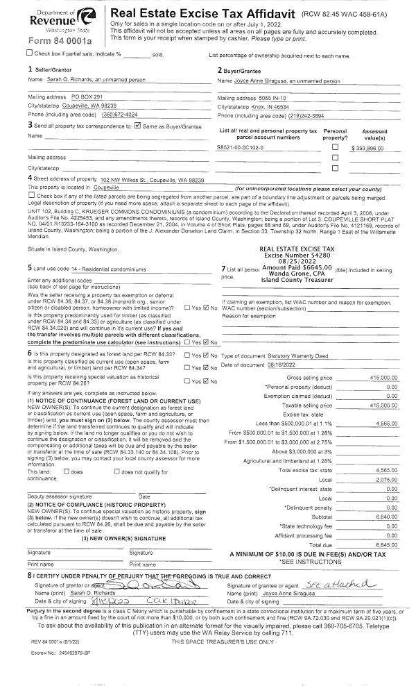 | 1 | 10/04/2002 | WD | Warranty Deed | TR CAMANO INC, | NOBLES, DWIGHT S | | | $239,000.00 | 24125 | 4034253 |