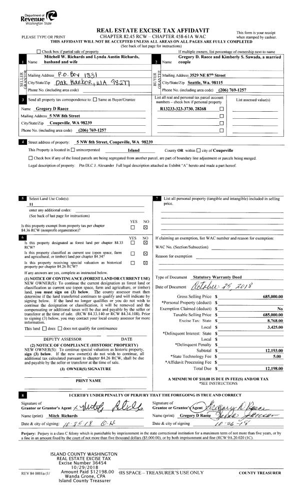 | 7 | 04/24/1998 | ESTSEPPROP | Establish Separate Property | T, R C | TR CAMANO INC, | | | $0.00 | 91397 | 99009254 |